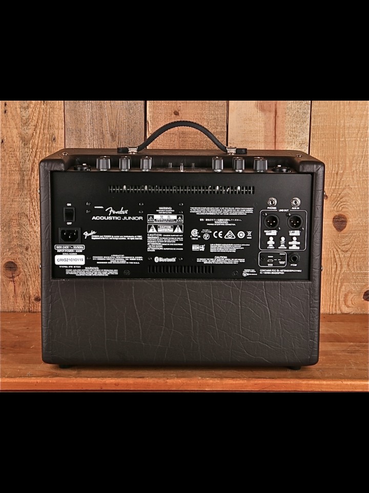 “The Acoustic Junior amplifier delivers full, natural, best-in-class performance for acoustic-electric guitar and vocals. This powerful, portable system has two channels designed for instrument or microphone use, each with studio-quality effects. Other convenient features include Bluetooth wireless audio streaming, an onboard 90-second looper perfect for solo shows, and more.”-from the Fender website