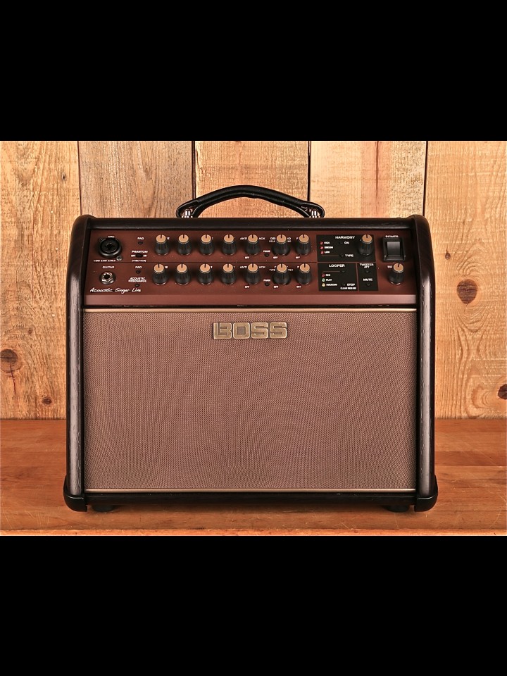 “The Acoustic Singer Live takes the acoustic stage amp to new levels of sound quality and creative versatility. Incorporating BOSS’s latest advancements in amplifier research, this compact powerhouse produces rich, vibrant sound with unmatched punch and clarity. Independent channels are provided for acoustic guitar and vocal, and each is equipped with discrete analog input circuits and three-band EQ for studio-quality sound. And with additional features such as Acoustic Resonance, looping, automatic vocal harmonies, effects, and much more, the Acoustic Singer Live gives acoustic musicians everything they need to deliver inspiring and impactful live performances.” - From the Boss Website