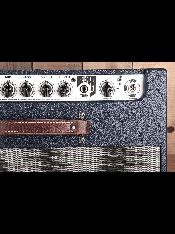 Fronting a dual-EL84 output stage that generates 16 watts of power, the Bel-Ray sports a front end of two 12AX7s plus a fat British-voiced EF86* pentode tube in a triple-threat preamp that delivers Top Boost chime, Plexi grind, and H-Watt punch at the twist of a switch.