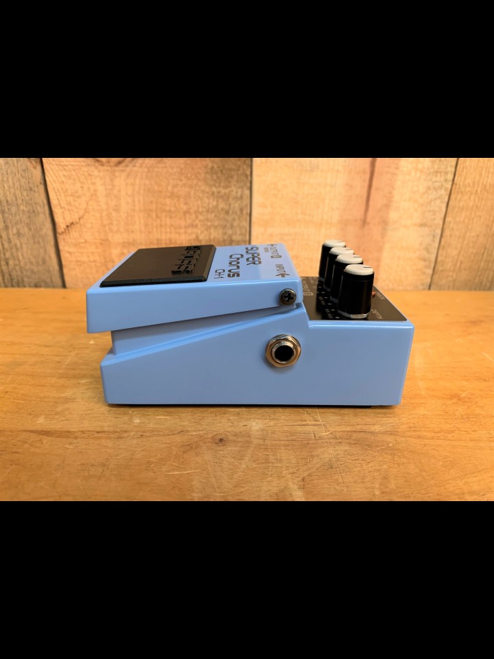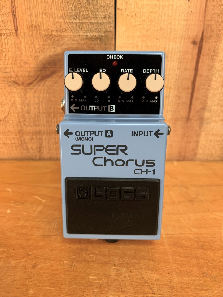 “The CH-1 Super Chorus pedal delivers a clean classic chorus sound with crystal-clear highs and a unique stereo effect, variable between left and right speakers.”-from the Boss website