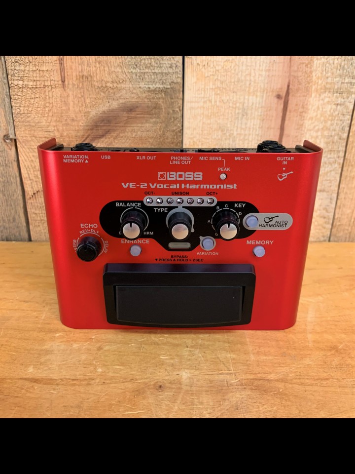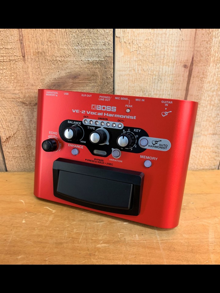“Combining sophisticated sound with simple operation, the VE-2 Vocal Harmonist delivers a complete effects solution for all singers, particularly those that perform with guitar. This portable, battery-powered stompbox has everything you need to create polished, studio-quality sounds everywhere you sing, from concert stages and street performances to practicing and having fun at home. The VE-2 magically creates beautiful harmonized vocals that follow your singing, with pitch that automatically tracks the chords played on a connected guitar, a preset key, or a combination of the two. Using one of these three operation modes, it’s easy to create perfect real-time harmonies in any key, even if you have no experience with gear or music theory. In addition to harmony, the VE-2 provides essential effects to enhance your voice, such as high-quality reverb/delay and an enhancer with real-time pitch correction. Also included is a USB audio function that allows you to connect to your computer and easily capture impressive VE-2 vocal sounds for music recordings, social media videos, and more.” - From the Boss Website