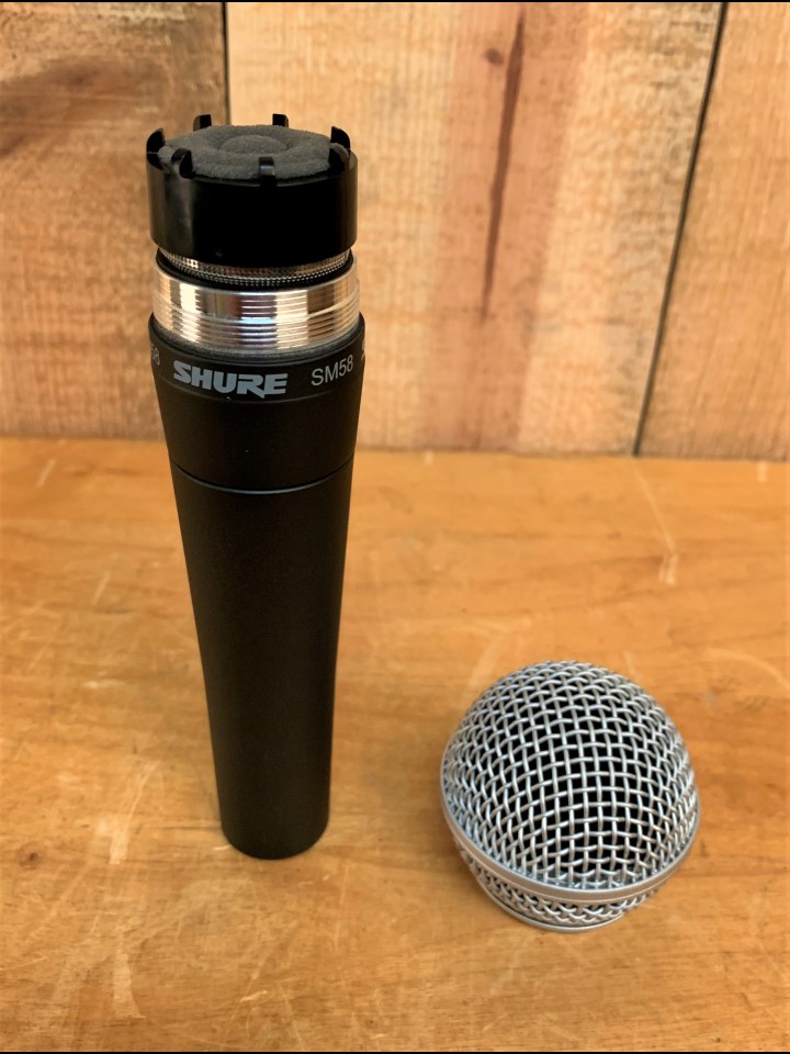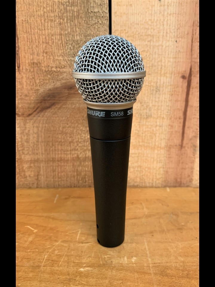 "The Shure SM58 unidirectional (cardioid) dynamic vocal microphone is designed for professional vocal use in live performance, sound reinforcement, and studio recording. It has a tailored vocal response for a sound which is a world standard for singing or speech. A highly effective, built-in spherical filter minimizes wind and breath 'pop' noise. A cardioid pickup pattern isolates the main sound source while minimizing unwanted background noise." - From the Shure Website
