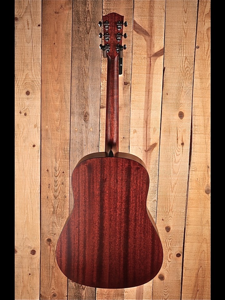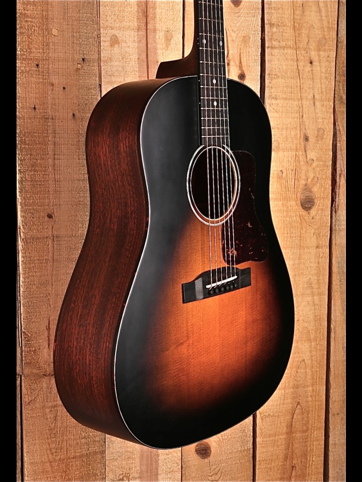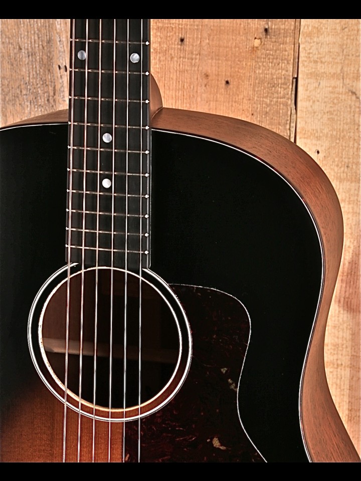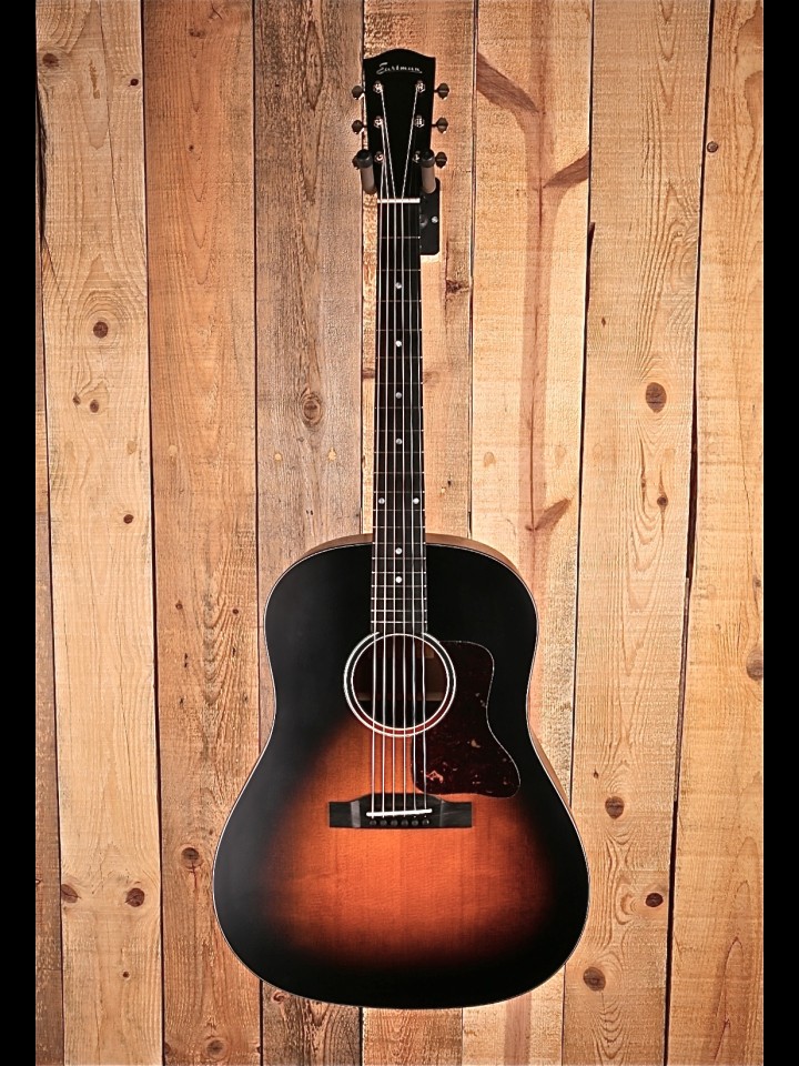 This E1SS-SB has similar features to the standard E1D, but shares more DNA with a Gibson J-45. The shorter scale length gives it a slightly quicker response and a nice, full balance that rhythm players and fingerstyle specialists can both appreciate.