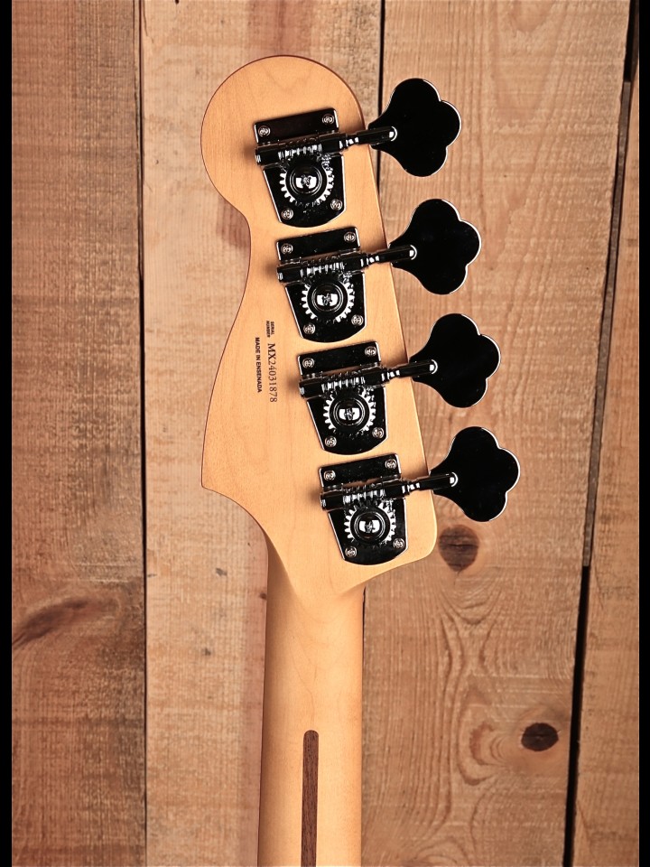 “The Player II Precision Bass radiates timeless Fender charm, but under the hood, it's primed for today's players. Everything about the neck is designed for fast and fluid playability, from the Modern “C”-profile with silky satin urethane finish on the back to the comfy 9.5”-radius slab rosewood or maple fingerboard with smooth rolled edges and 20 medium jumbo frets. A classic alder body is available in both timeless Fender finishes and never-before-seen colors unearthed from the archives. Player Series Alnico V Split-Coil P bass pickups offer sweet highs, musical mids and seismic lows that elevate any genre. An adjustable 4-saddle bridge, single-groove steel saddles and open-gear tuners ensure precise tuning stability for the flexibility to explore endless sonic possibilities.” – From the Fender Website