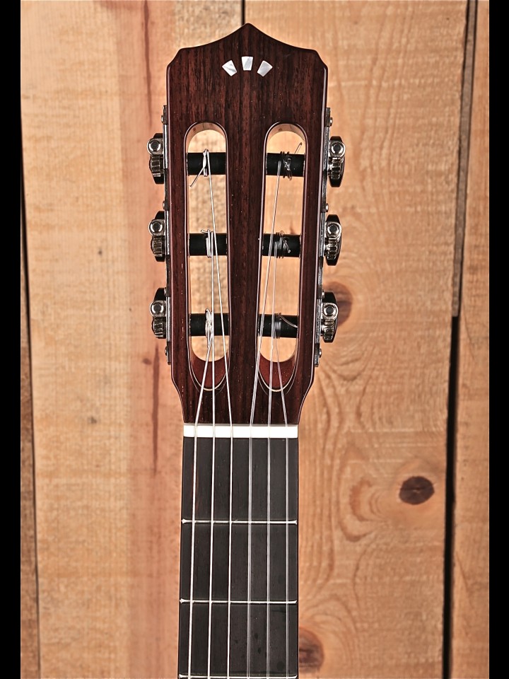 "The all-solid C10 Crossover offers a new spin on a Córdoba classic. Built with a solid European spruce top and solid Indian rosewood back and sides, the C10 Crossover's main standout feature is its slim neck. A reduced 48mm nut width, 16" radius fingerboard, and thin-profiled C-shaped mahogany neck will feel familiar to steel string and electric players." -- From the Cordoba Website