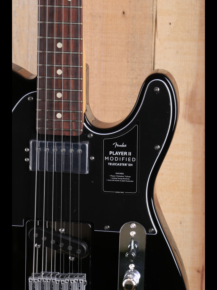 “The Player II Modified Telecaster® SH is a classic guitar with the modern player in mind. Everything about the neck is designed for fast and fluid playability, from the Modern “C”-profile with silky satin urethane finish on the back to the comfy 9.5”-radius slab rosewood or 1-piece maple fingerboard with smooth rolled edges and 22 medium jumbo frets. The alder body provides classic Fender punch and is available in a variety of exciting new finishes. The Player II Modified humbucker is articulate with plenty of output and the noiseless™ pickup delivers classic Tele® twang and bite while eliminating unwanted noise and feedback. For additional tonal flexibility the push/pull tone switch splits the neck humbucker and enables classic Tele® neck single-coil tones. The 6-saddle bridge, short post locking tuners, TUSQ® nut and modern string tree all combine to keep tuning incredibly stable for even the most demanding steel-emulating bends or roaring rock leads.” – From the Fender Website