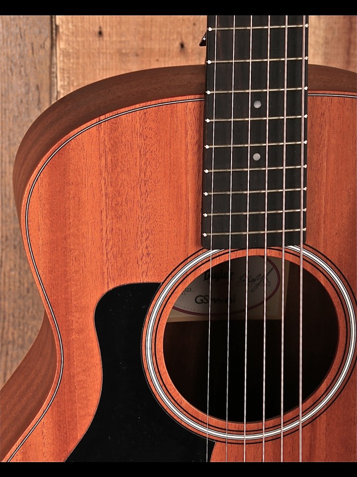 Mini Grand Symphony with All Mahogany Left Handed The Mini is one of our favorite “couch, travel” guitars. Convenience and versatility in a great sounding package. It has also become a favorite of young beginners who want a quality instrument in a manageable size. "The GS Mini was designed to be the ultimate musical companion, wherever you go — or stay. Inspired by the big, bold sound of Taylor’s award-winning GS body shape, the GS Mini scales things down without skimping on sound, packing a lot of tone into a comfortable, portable size and giving you a guitar that’s incredibly fun to play. With Taylor’s patented NT® neck, you’ll always enjoy signature Taylor intonation and playability. So, wherever you end up, whether you’re on tour or on the porch, the GS Mini is always ready to play." - From the Taylor website