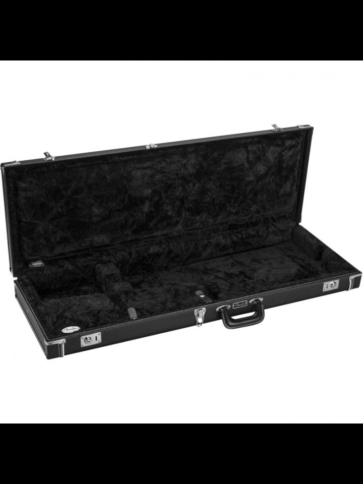 “Classic Series wood cases are a stylish and dependable way to protect your Fender® electric guitar. Crafted with road-reliable materials, this 3-ply hardshell wood case boasts a vinyl wrapped steel carry handle and draw latches in addition to triple-plated hardware throughout the case. A soft crushed acrylic plush interior lining ensures your guitar remains scratch and damage-free, while a spacious accessory compartment offers plenty of room for spare strings, picks, tuners (or whatever small items you wish to carry with you) with lasting style and peace of mind.” – From the Fender Website