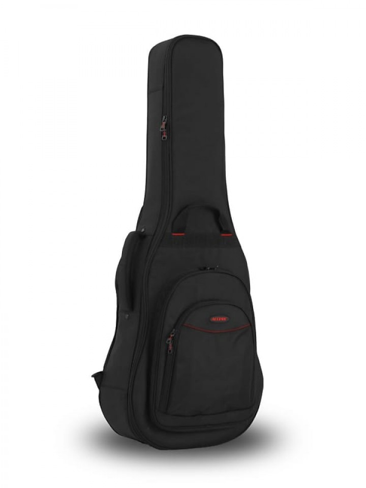 “Special guitars like your OM or classical guitar deserve special handling. Our Stage Three Small-Body Acoustic Guitar Gig Bag offers the best of both worlds—the superior shock absorption of a heavily padded bag and the solid hardshell protection of a case. It perfectly fits OM and 000 (Triple O) size guitars. This rigid bag features a 1200-denier exterior, a HardCell™ composite shell augmented with polymer panels, an adjustable microball neck support, large zippered front pockets with multiple compartments, and adjustable, ergo-designed padded shoulder straps.” - From the Access Website