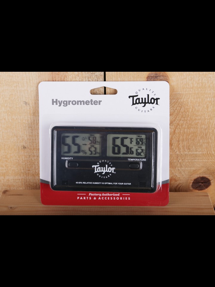 "When it comes to helping players take good care of their acoustic guitars, few things are more impactful than reinforcing the importance of relative humidity and temperature to a guitar’s condition. The new digital hygrometer from TaylorWare provides a clear readout of climate information for virtually any space, from the inside of a guitar case to a studio or just a player’s home. Designed with large readouts for both relative humidity and temperature for easy reading at a glance, the hygrometer also features a kickstand for flat surfaces as well as screw holes for easy wall-mounting. Accurate to within 5 percent, the digital hygrometer comes with the required 2 AAA batteries and can switch between Fahrenheit and Celsius." - From the Taylor Website