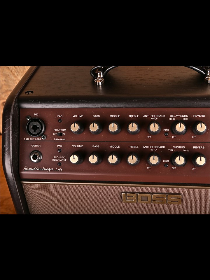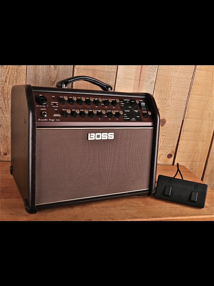 “The Acoustic Singer Live takes the acoustic stage amp to new levels of sound quality and creative versatility. Incorporating BOSS’s latest advancements in amplifier research, this compact powerhouse produces rich, vibrant sound with unmatched punch and clarity. Independent channels are provided for acoustic guitar and vocal, and each is equipped with discrete analog input circuits and three-band EQ for studio-quality sound. And with additional features such as Acoustic Resonance, looping, automatic vocal harmonies, effects, and much more, the Acoustic Singer Live gives acoustic musicians everything they need to deliver inspiring and impactful live performances.” - From the Boss Website