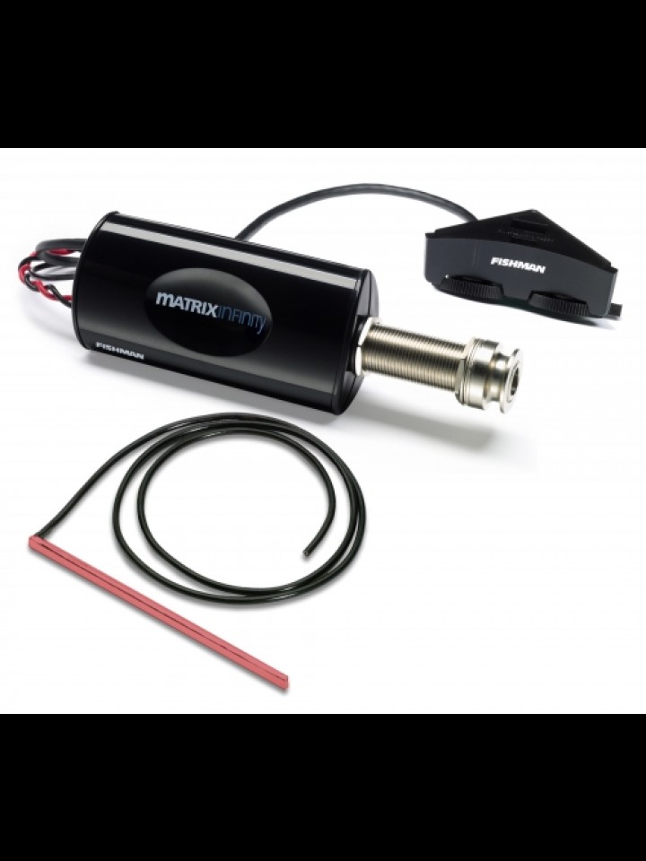 "The Matrix Infinity pickup and preamp system, the newest version of our flagship Matrix Series, offers clear, transparent tone, dynamic string response and ease of installation. Soundhole-mounted Volume and Tone rotary controls allow the player to make easily accessible adjustments."-from the Fishman website