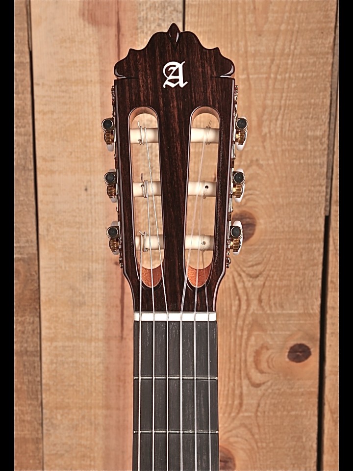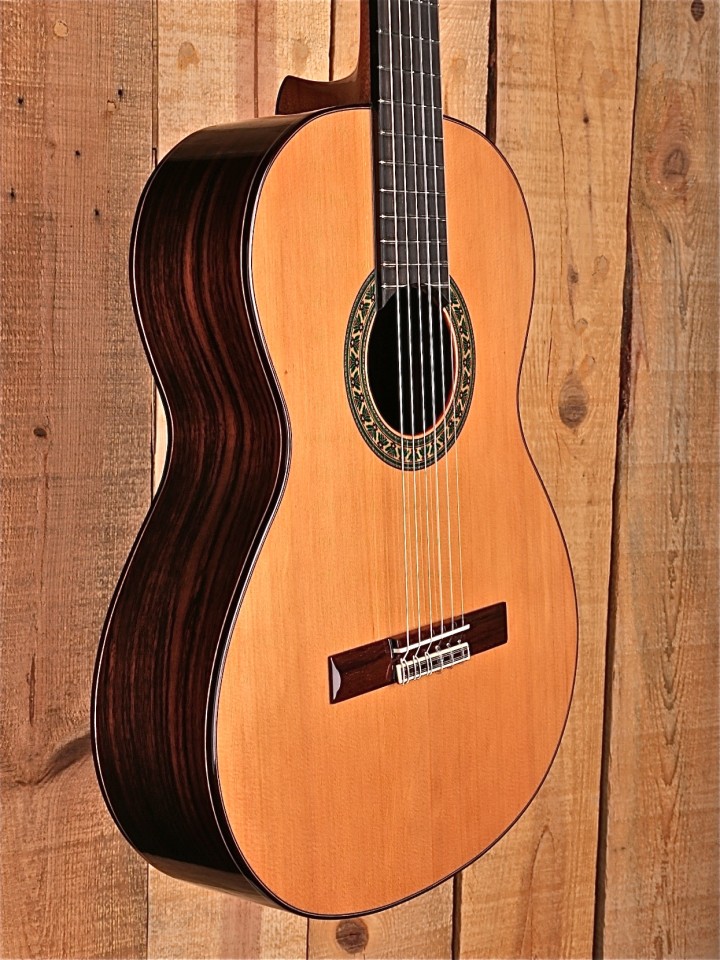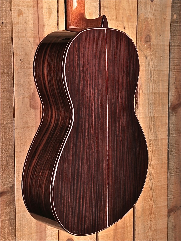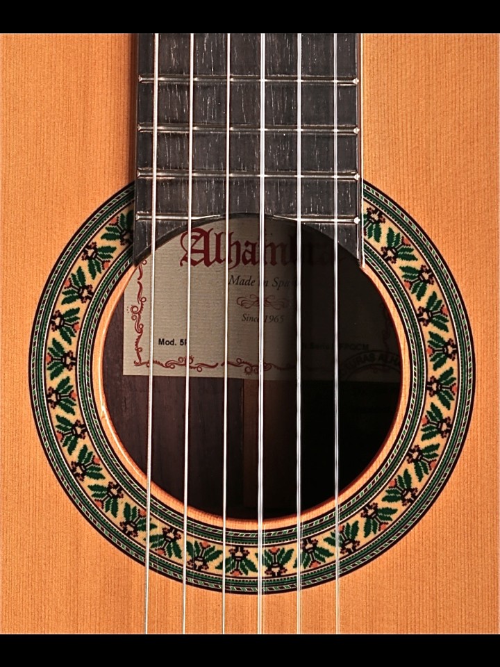 “The 5 P model of Alhambra guitars is a step closer to the model 4 P. The construction of the body is modified to give greater robustness and maintains characteristics details such as the four layers of varnish, the fingerboard with ebony wood, better quality machine heads and the use of a beautiful Indian Rosewood for sides and back.” – From the Alhambra Website