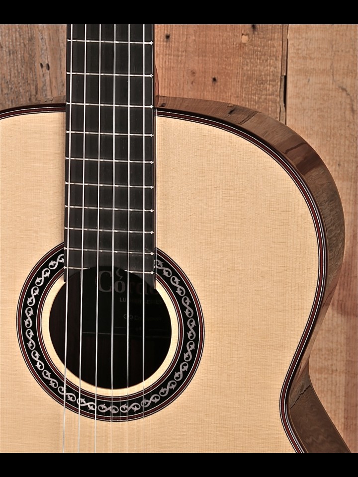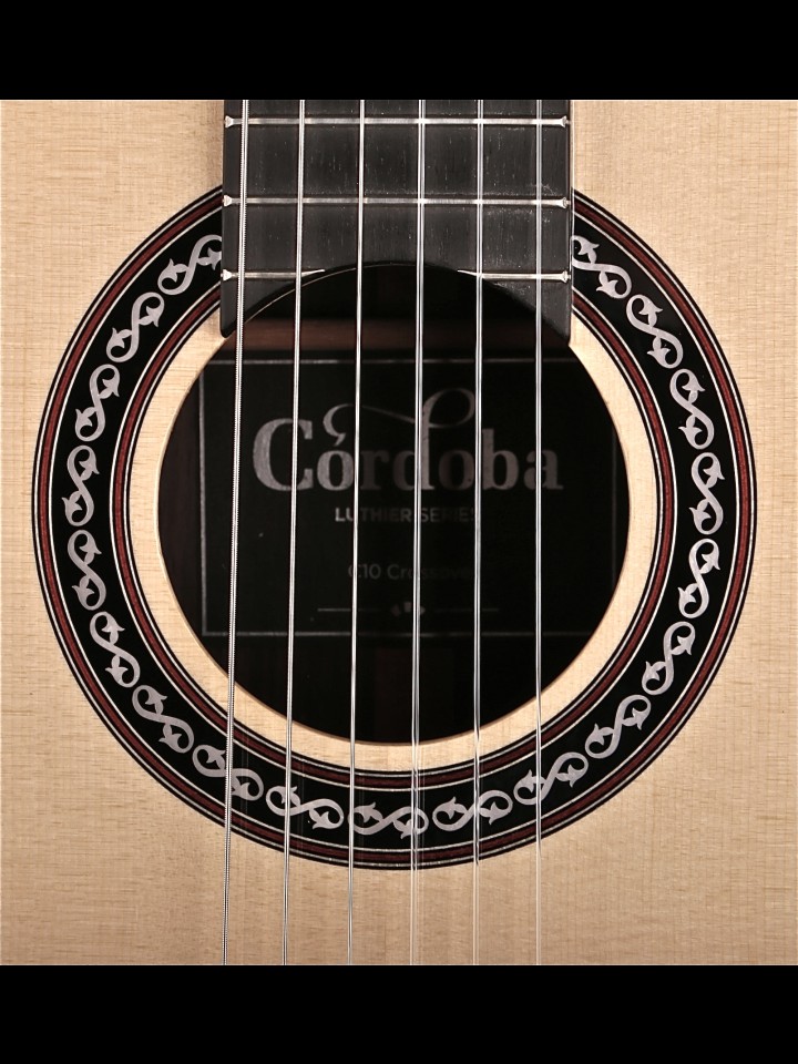 "The all-solid C10 Crossover offers a new spin on a Córdoba classic. Built with a solid European spruce top and solid Indian rosewood back and sides, the C10 Crossover's main standout feature is its slim neck. A reduced 48mm nut width, 16" radius fingerboard, and thin-profiled C-shaped mahogany neck will feel familiar to steel string and electric players." -- From the Cordoba Website