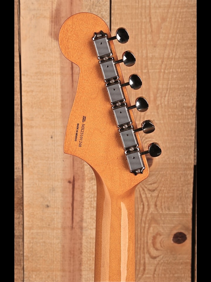 The Vintera® II '50s Jazzmaster® features an alder body and a maple neck with rosewood fingerboard for classic Fender tone that's full of punch and clarity. The late-'50s "C"-shape neck lends a comfortably familiar grip that feels just right in your hand, while the 7.25" radius fingerboard with vintage-tall frets provide vintage comfort with ample room for big bends and expressive vibrato. Under the hood, you'll find a pair of vintage-style '50s single-coil pickups that deliver all the sweet and sparkling, warm and woody tone that made Fender famous. The vintage-style floating tremolo lets you dive and wail with abandon, while vintage-style tuning machines provide classic looks with a finer gear ratio and enhanced tuning stability to complete the package.