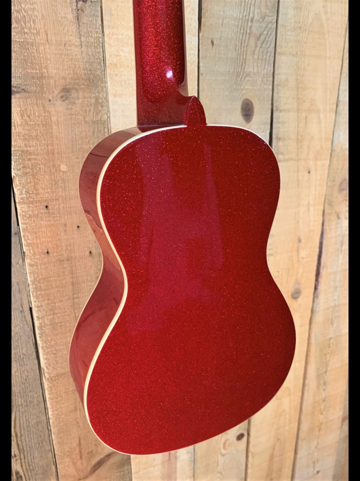 Welcome to the Roaring 2020’s! 1920 would have been jubilant to have these glittery, glamorous ukuleles! So classy—with colors like Ritzy Red, Pink Champagne, Rhapsody in Blue, Stardust Gold, Gatsby Green and Galaxy Black outlined in cream binding and gloss finish—they are hard to walk past. Each one makes you want to stop and stare and see if they sound as good as they look—and they do! – From the Kala Website