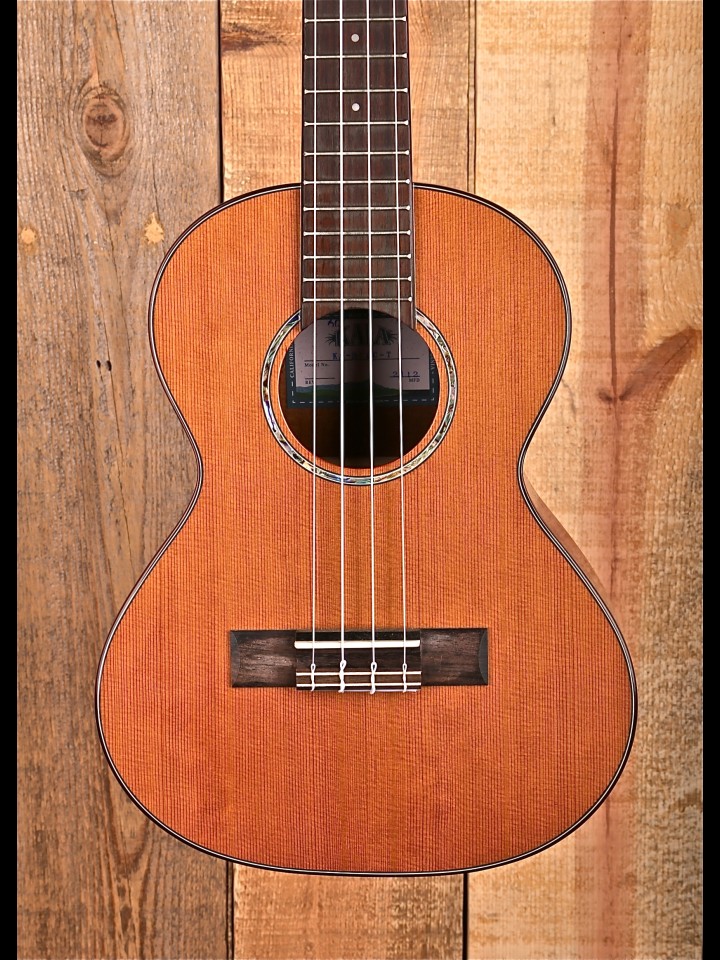 "Elegant and beautiful, these are some of the best sounding ukuleles you will ever play. To complement such an excellent sounding instruments, we gave it a full redesign for 2021. The Solid Cedar Top with Acacia back and sides in a shiny, gloss finish, trimmed out in Rosewood binding is a sleek combination. We added an Abalone rosette, Rosewood fingerboard and bridge, and Graphtech Ratio Black Tuners.